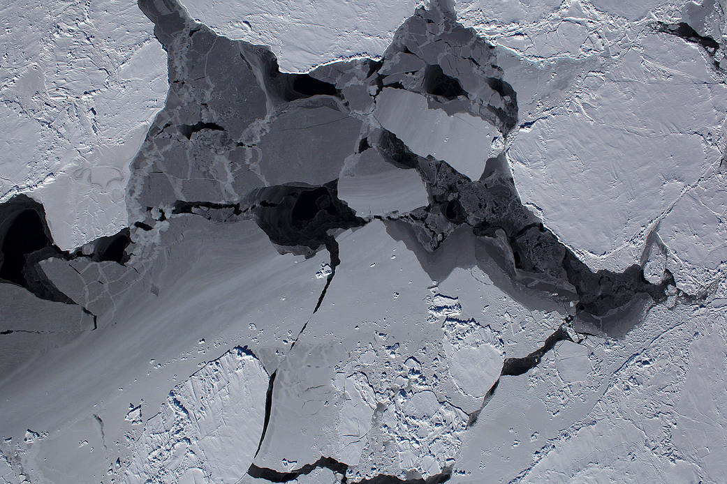 This complex mixture of different types of Antarctic sea ice was photographed on Oct. 13, 2012. Also in the Bellingshausen Sea with the Digital Mapping System (DMS) onboard NASA’s DC-8 flying laboratory. Different thicknesses of sea ice common in the Southern Ocean form a spectrum of colors and shapes ranging from dark black (open water). Although a thin grease-like covering (grease ice), and thicker grey ice. Older sea ice has a bright white covering of snow and many chaotic deformation features visible as ridges. Therefore rubble fields caused by the continuous motion of the ice pack. DMS sea ice imagery is used during NASA’s Operation IceBridge over Antarctica to detect areas of open water so that scientists can calculate the thickness of the surrounding sea ice. Credit: NASA/Digital Mapping System