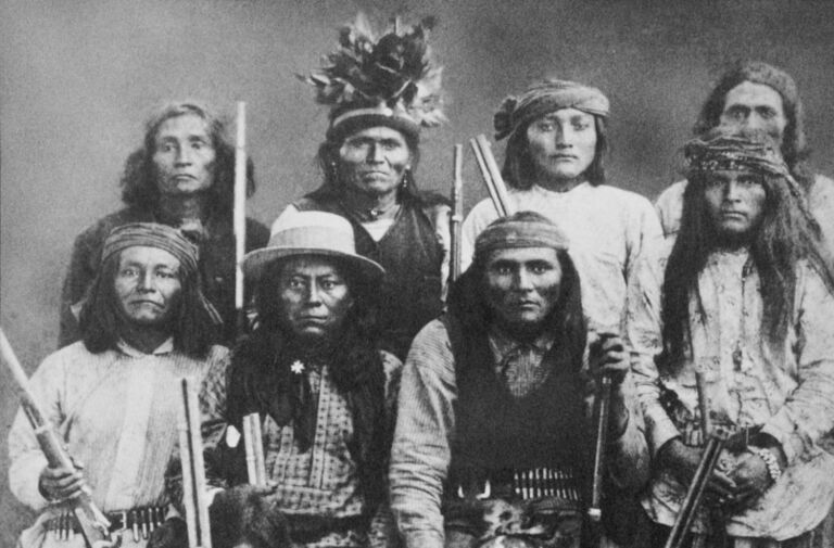Naturally, many Apache bitterly opposed the white settlers who took their lands. This group of scouts, though? They actually worked for the U.S. Army. Yep, the ten men photographed here assisted General George Crook. He was hunting the Apache leader Geronimo, who was finally forced to surrender in 1886 – likely the very year this image was created. Photo Credit: Universal History Archive/Universal Images Group via Getty Images