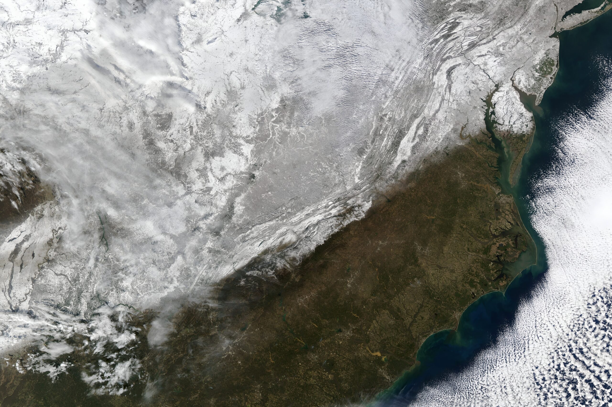 Today’s Image of the Day from NASA Earth Observatory features snow across much of the eastern United States after an Arctic blast of cold air moved across the country in mid-January.