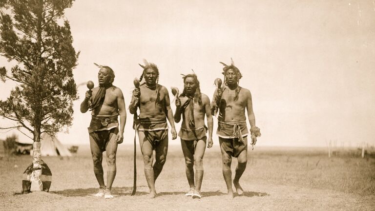 Here are four Arikara medicine men performing a ceremony that was intended to bring rain and food to their people. In the late 19th century, government officers attempted to ban such acts of worship – although enforcement of this was nigh-on impossible. Yet this 1908 image was actually set up by the legendary photographer of Native Americans, Edward S. Curtis. Photo Credit: Edward S. Curtis
