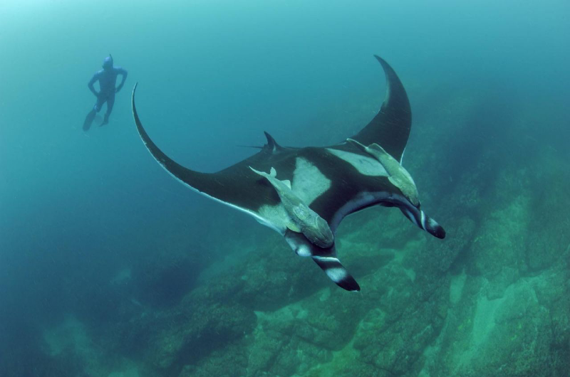 The giant manta ray easily outsized the young boy. It was about triple his size. Onlookers resumed yelling at Joel to get back but his response left them dumbfounded.