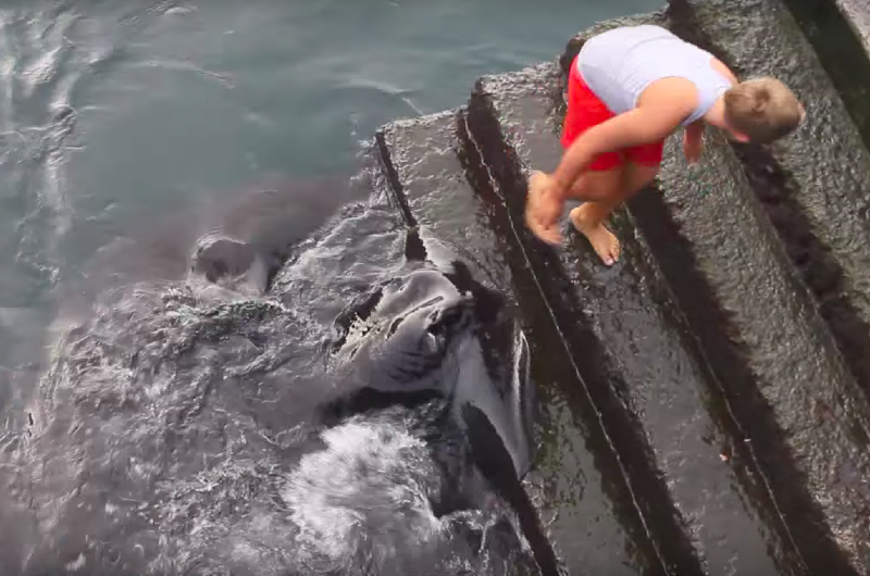 As the beast approaches, smaller fish scramble into the sea to escape. An enormous fish’s fin breaks the surface of the water and slashes through it, revealing the smooth black mass underneath it. The question was, however, did Joel notice it? Photo Credit: YouTube_gekkovision