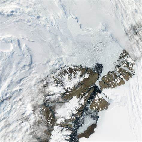 In mid- to late August 2010, a Bermuda-sized ice island broke free from the Ward Hunt Ice Shelf along the northern coast of Canada’s Ellesmere Island. The Moderate Resolution Imaging Spectroradiometer (MODIS) on NASA’s Aqua satellite detected fractures on the shelf on August 18. The breakup on this ice shelf continued a years-long pattern of retreat on the Ward Hunt Ice Shelf, and a decades-long pattern of retreat of the ice shelves along the Ellesmere coast.