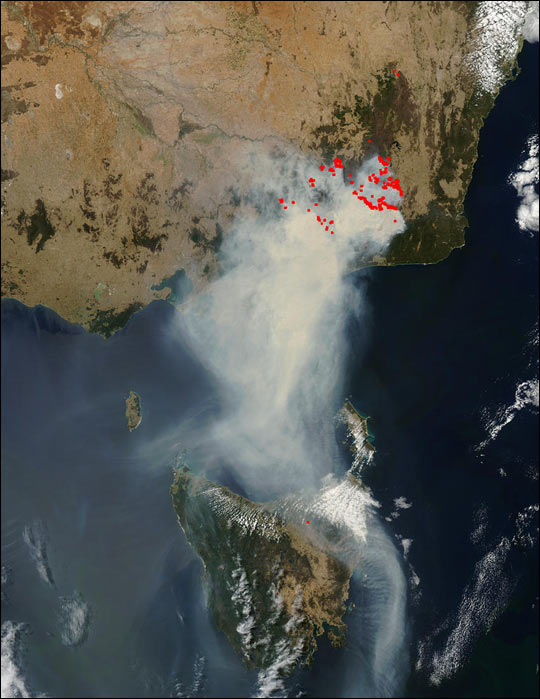 The smoke Bushfires Raging in Southeast Australia plume from the southeast Australia. Also was 300 kilometers (186 miles) wide in places and more than 877 kilometers (545 miles) long on February 4, 2003. Fires have been burning out of control in the region for several weeks. Therefore even invading urban areas such as Canberra, the nation’s capital. This true-color Moderate Resolution Imaging Spectroradiometer (MODIS) image was captured by the Aqua satellite.