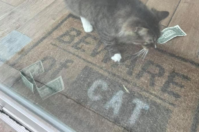 Perhaps she also worked in their area? The tight-curled woman stood apart from the enthusiastic crowd, watching as the cat would wander from his favorite sleeping spot on the floor to the door and back. Photo Credit: Facebook / CASHnip Kitty