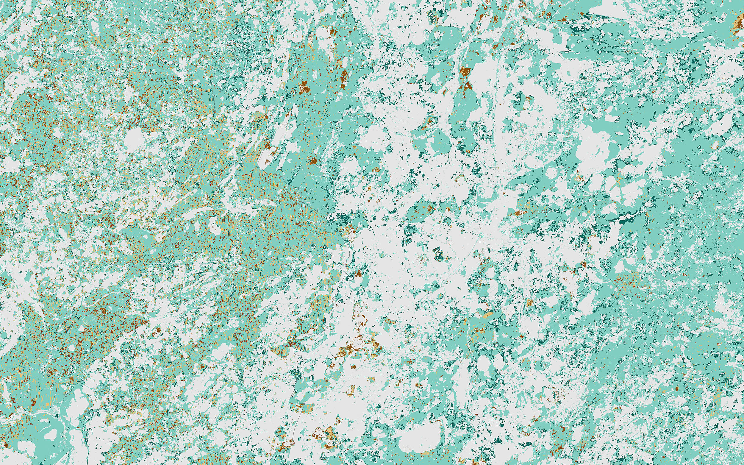 The map at the top of this page shows the differences in forest dynamics along the border between Latvia and Russia. On the Latvian side, where forests tend to be small and privately owned, logging activity has been intensive. On the Russian side, logging has been much less widespread. However, the size of each cleared area is larger.