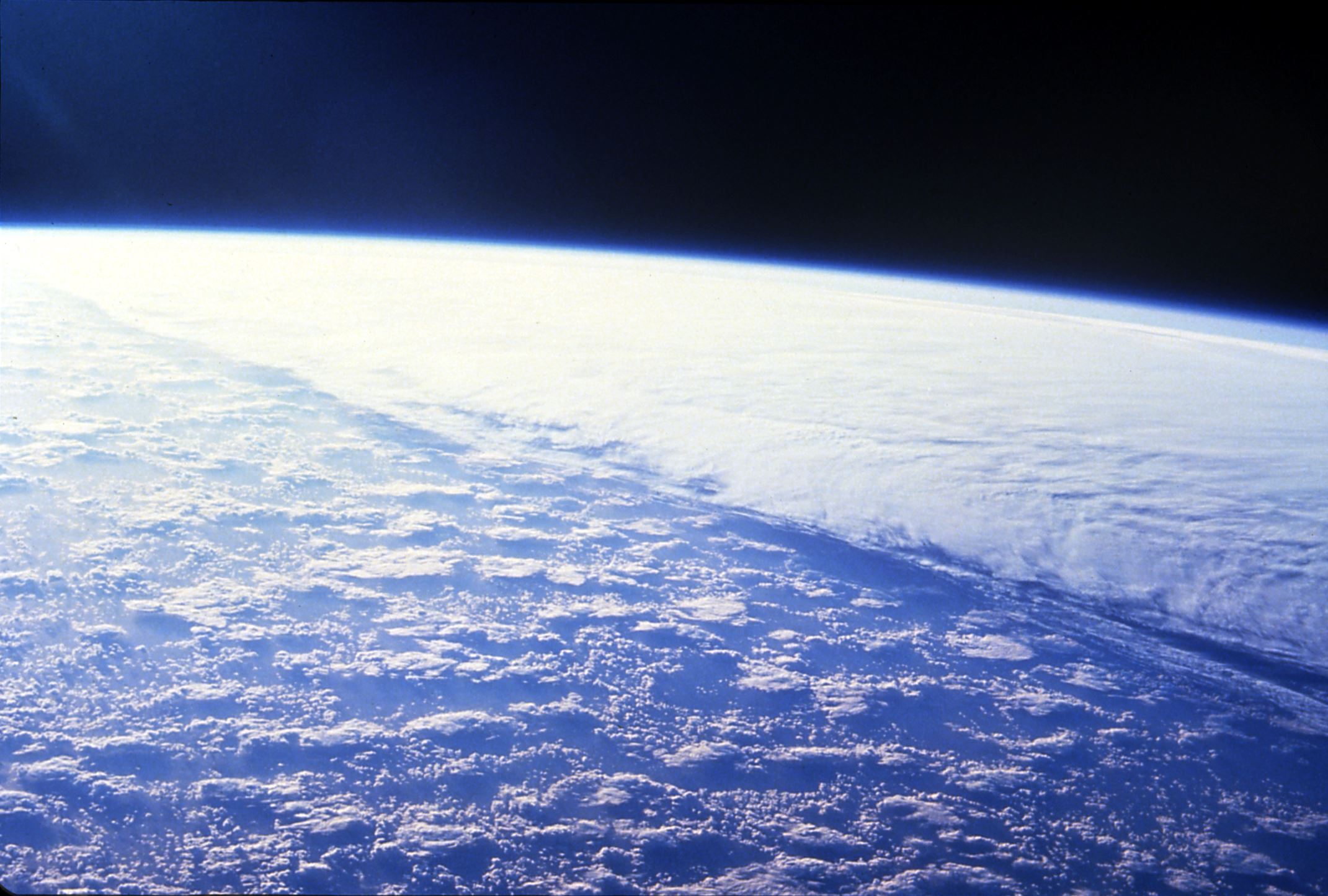 The spin of the Earth sends this air into a clock-wise circle. In this image, only the bottom half of the anticyclone, where the air flows over open water and clouds form, is clearly visible. A cyclone, by contrast, rotates around the center of a low-pressure system. In this case, air rises as it rushes into the area of low pressure. The opposite direction of this movement (up and in instead of down and out) means that the air is pulled into a counter-clockwise rotation around the center. Anticyclones usually bring fair weather, while cyclones carry rain and strong winds.