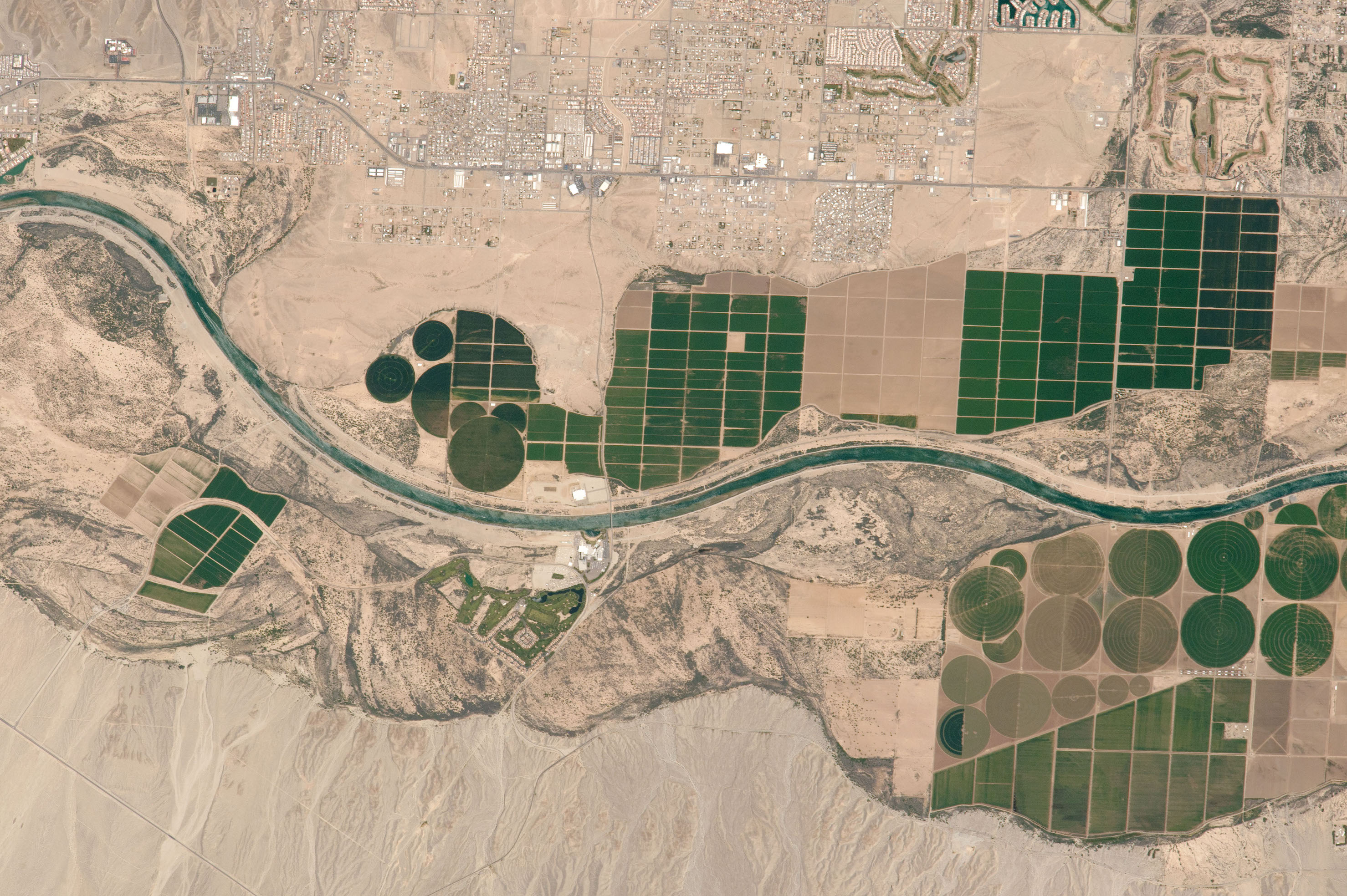 Colorado river agriculture is seen here in these fields of crops that take advantage of the rich soil close to the river. The larger crop circles measure roughly 2500 square feet in diameter. Today’s Image of the Day comes thanks to the NASA Earth Observatory and features a look at agriculture along the Colorado River.