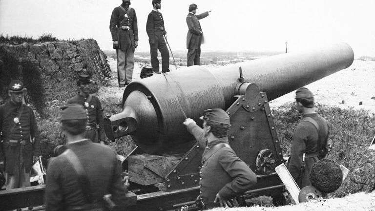 Union troops from the Second Division of the 15th Corps commanded by General William B. Hazen are seen here at Fort McAllister in Richmond Hill, Georgia. Hazen led an attack of 4,000 troops on the fortification in December 1864. After a 15-minute battle, his men overwhelmed the 230 defenders, capturing 15 guns and taking the surviving Confederate soldiers prisoner. The skirmish opened the way for the attack and capture of the Confederate city of Savannah a couple of weeks later. Photo Credit: Bettmann/Getty Images