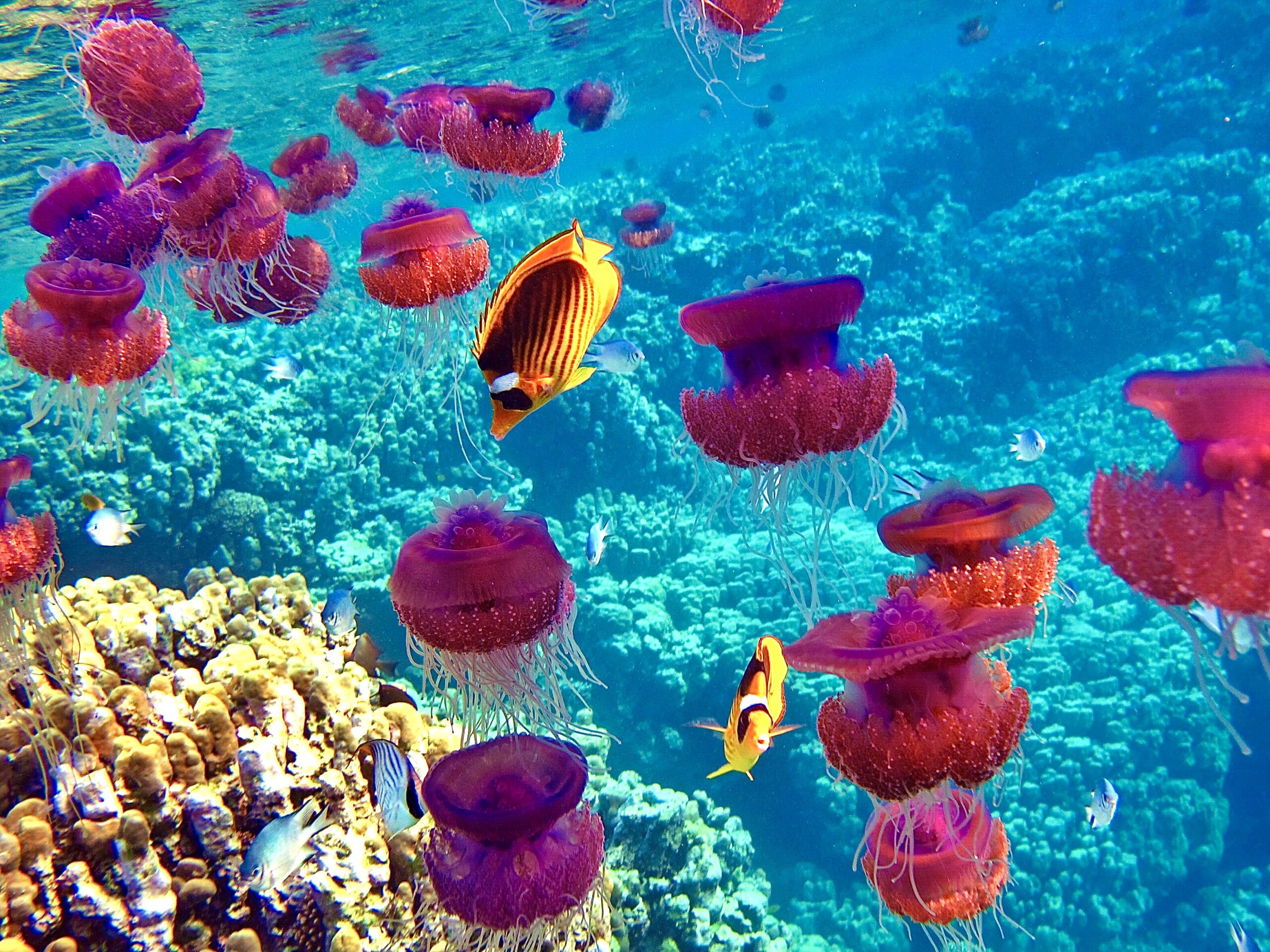 The crown jellyfish is bioluminescent in nature with an umbrella-like crown. The color ranges from bluish purple to mauve. Eight arm-like tentacles extend from the bell which is used to sting their prey. They are distinguished from other jellyfish by the presence of a deep groove running around the umbrella, giving them the crown shape from which they take their name. Many of the species in the order inhabit deep sea environments.