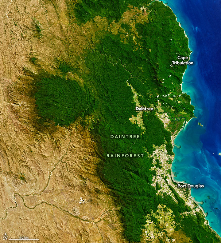 Today’s Image of the Day from NASA Earth Observatory features the Daintree rainforest in far north Queensland.