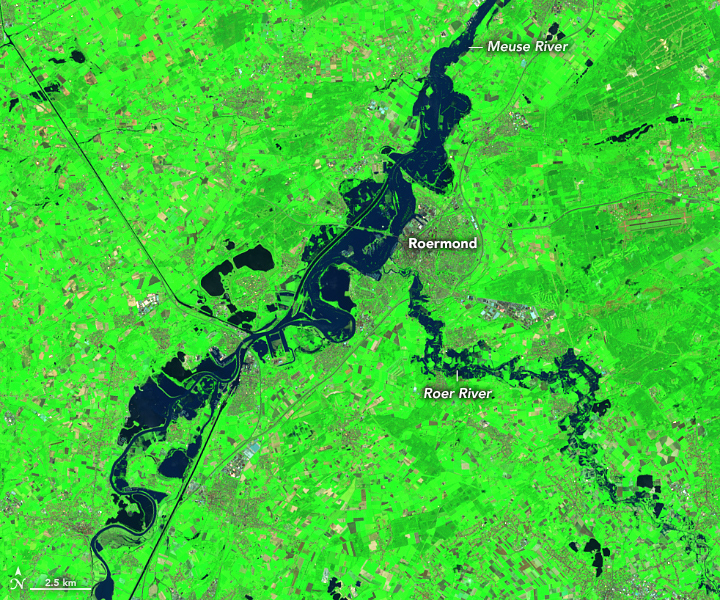 Deadly flooding along the Meuse and Roer rivers Today’s Image of the Day from NASA Earth Observatory shows devastating flooding along the Meuse and Roer rivers in Western Europe. Last week, torrential rainfall inundated parts of Belgium, Germany and the Netherlands.
