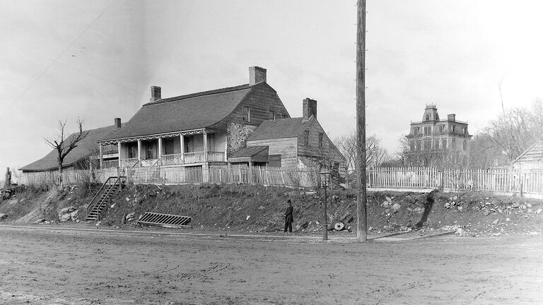 As far back as 1885, the sidewalk was pretty much level with the farmhouse. But those pavements were eventually lowered down by about 15 feet in the following years. As a result, the building is now a lot higher up, with paved walls and greenery filling out the lower sections. Photo Credit: photo by Ed Wenzel / My Inwood