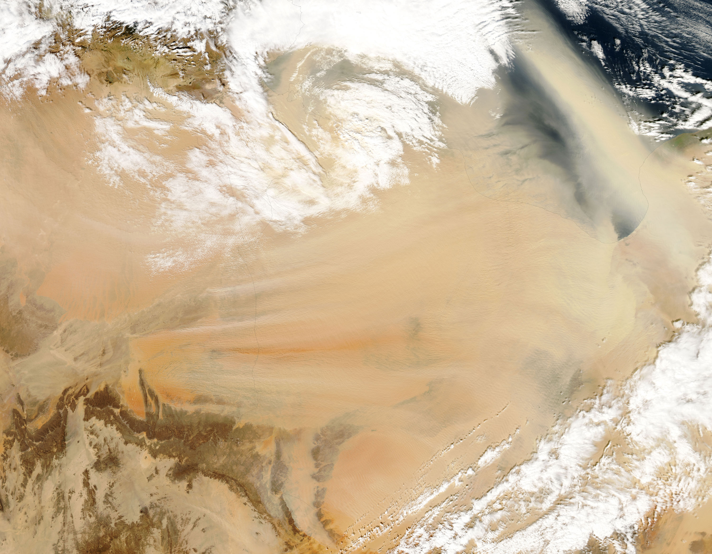 Dust storms of this sort are a significant natural hazard, posing dangers to navigation and causing respiratory distress. Images like this one can be used to track the movement of storms as well as serve as an early warning system, alerting local and region officials of impending storms and allowing for improved preparation and response.
