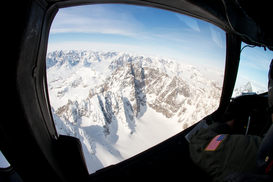 A NASA pilot flies the P-3B aircraft over mountains in eastern Greenland mountains on Apr. 14, 2012 as part of Operation IceBridge’s campaign to measure Arctic ice. Credit: NASA/Jefferson Beck