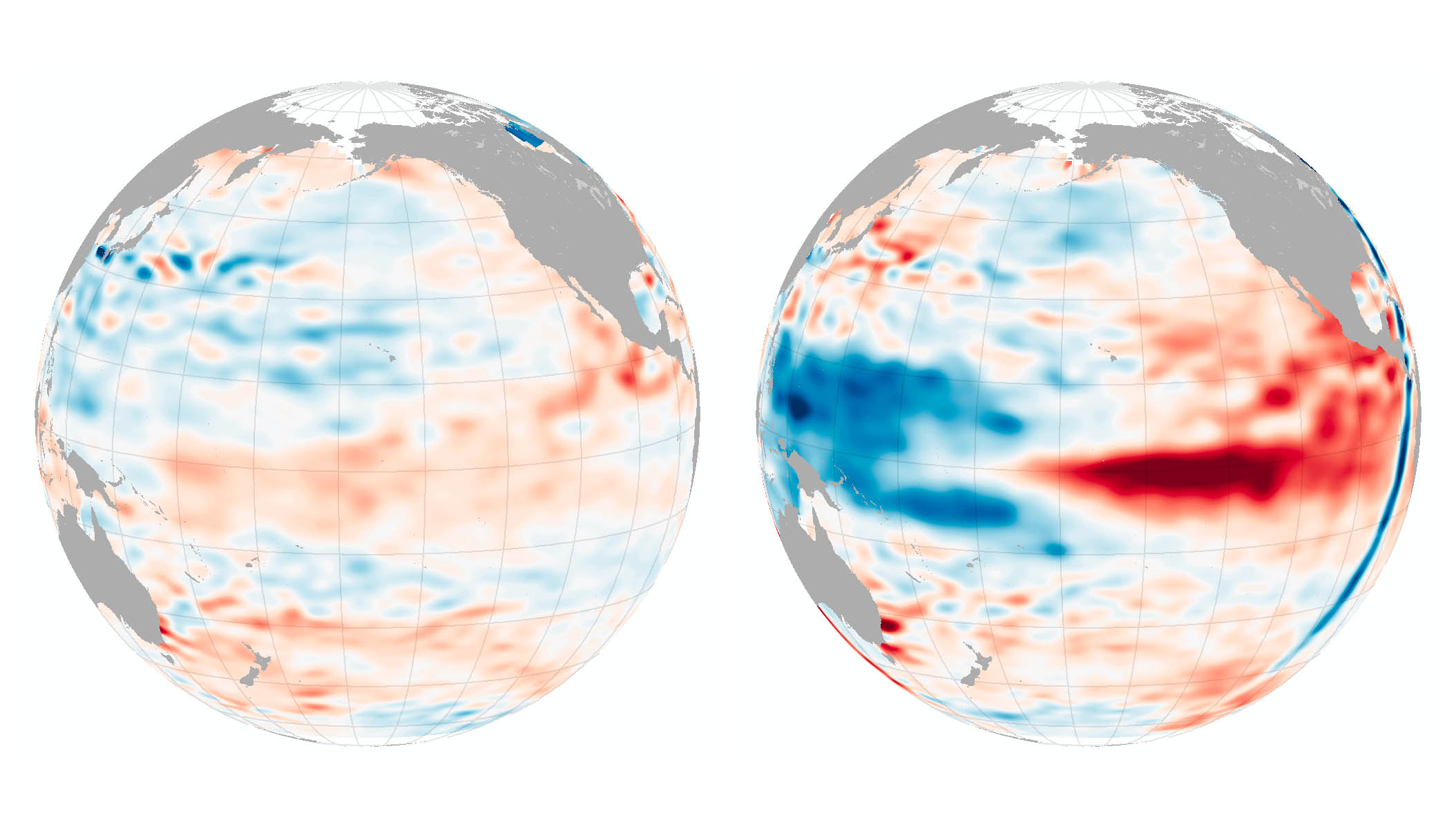 Bill Patzert, a climatologist at NASA’s Jet Propulsion Laboratory, sees the potential for a second peak for this El Niño. He pointed to a recent relaxation in the trade winds and a west wind burst that could refuel the warming trend in the eastern Pacific. Weaker trade winds in the eastern Pacific allow west wind bursts to push warm waters toward the Americas. (Click here to watch Kelvin waves propagating across the ocean.) Patzert suspects February and March 2016 could still be very active months for El Niño-driven weather along the western coasts of the Americas.