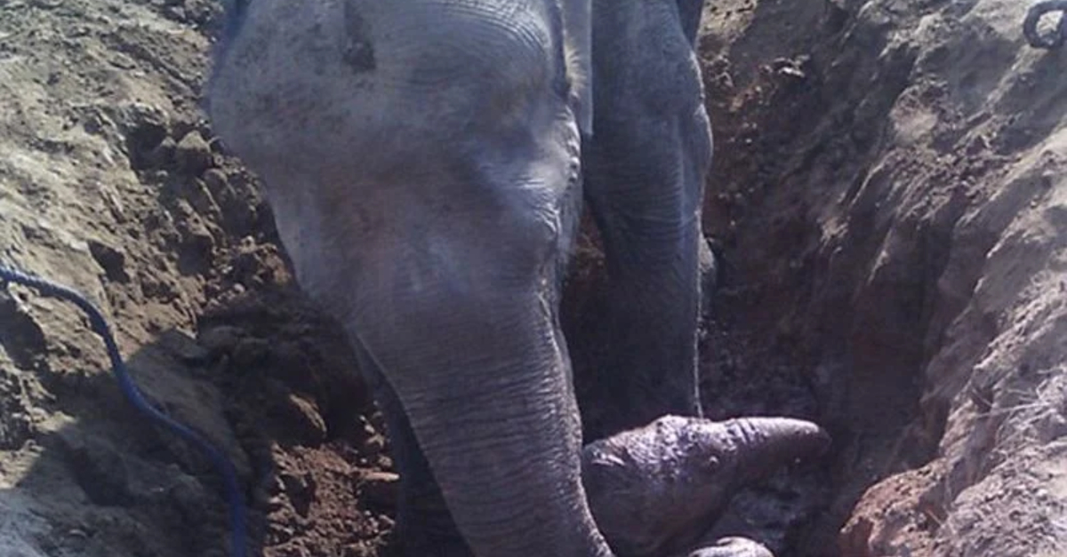 Tiwari realized the elephant was a female, and not just a female but a female who was nursing a calf that must have been born not too long ago. Tiwari inched forward and saw her baby. It was stuck in the bottom of the muddy hole. “She’s trying to rescue her baby!”, Tiwari shouted. “This makes her highly dangerous. Everyone please stay back!”.
