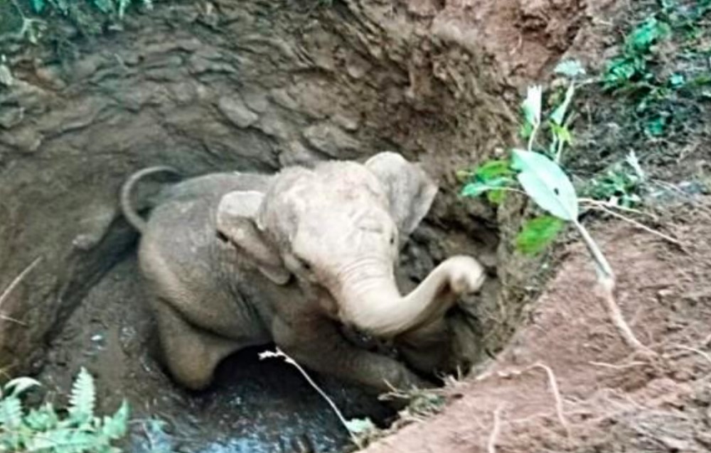 The smell of the fresh bananas was too much for the starving elephant – her instincts to survive ultimately overrode her efforts to save calf, even if it was just for a few minutes while she stopped and ate. Tiwari, his team, and the villagers sprung into action. They knew they didn’t have much time.