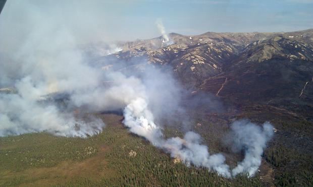 Large billowing clouds of smoke stream to the southwest from large fires in eastern Alaska in this true-color. Now that winter’s snows have receded from most of the northern latitudes. Both fires and plants can flourish, though high-pressure systems and high winds have increased fire risk conditions to extreme levels.
