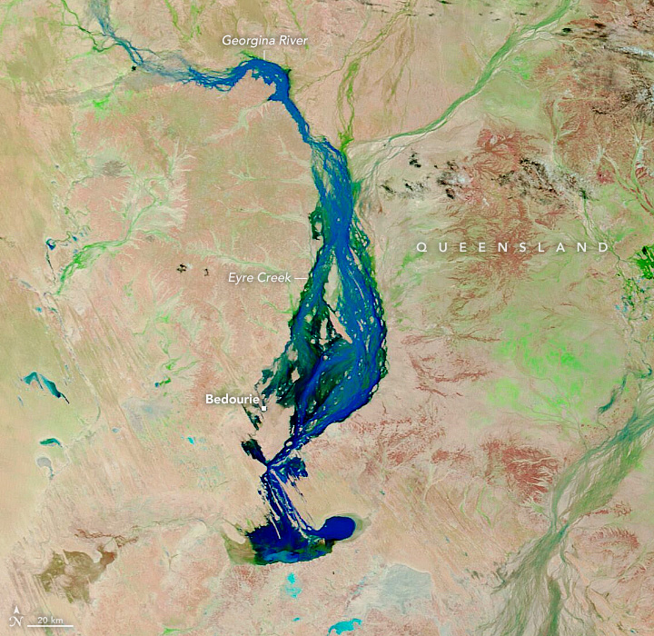 Today’s Image of the Day from NASA Earth Observatory features flooding in Channel Country, a pastoral region that is primarily located in southwestern Queensland.