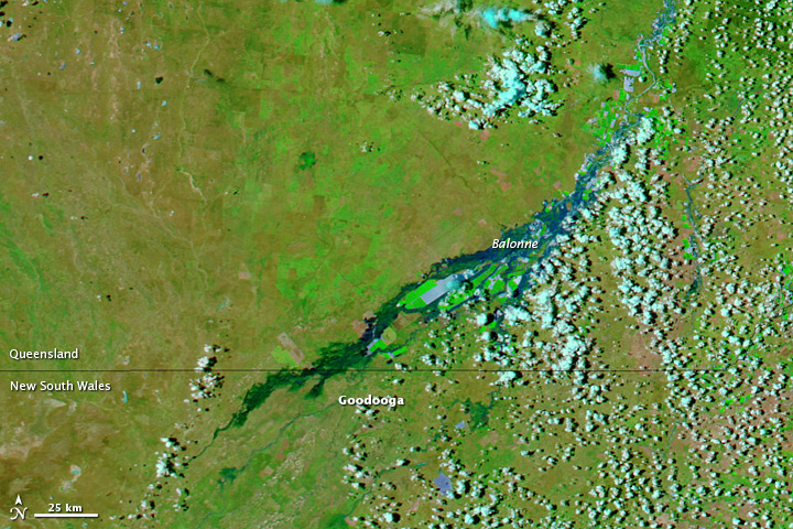 Floods Spread to New South Wales. As flood waters moved south from Queensland, Australia, in early January 2011, one of the first communities affected in neighboring New South Wales was Goodooga. Already remote, the village was expected to be isolated from the outside world for up to six weeks, The Sydney Morning Herald reported.