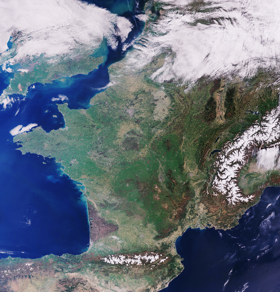 France from space on a clear day Today’s Image of the Day comes thanks to the European Space Agency (ESA) and features a look at France from space on a cloudless day.