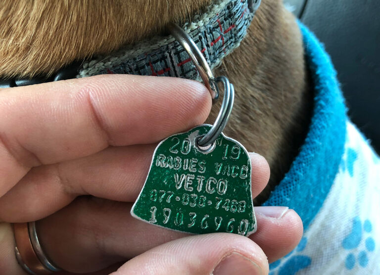 Before taking the dog into the office, Kris called the number on the dog’s rabies vaccine tag to see if he could obtain any information on who the lonely mutt belonged to. He found out that the mongrel was just eight months old and adorably named Frosting. Photo Credit: Kristofer Goldsmith / Twitter