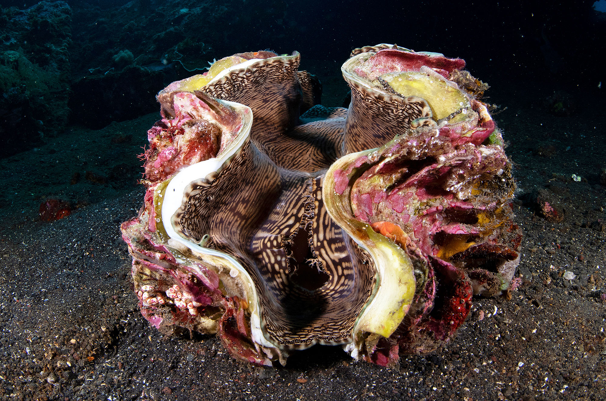 The giant clam lives in flat coral sand or broken coral and can be found at depths of as much as 20 m (66 ft). Its range covers the Indo-Pacific, but populations are diminishing quickly, and the giant clam has become extinct in many areas where it was once common.