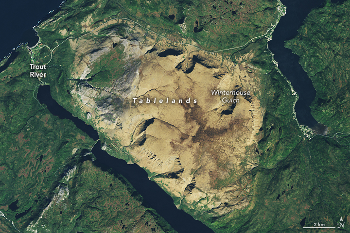 Located on the south end of the park, the Tablelands consist of flat-topped land that is rich with peridotite rock from the upper part of Earth’s mantle. Around 500 million years ago, the rock was pushed toward the surface in a process known as subduction.
