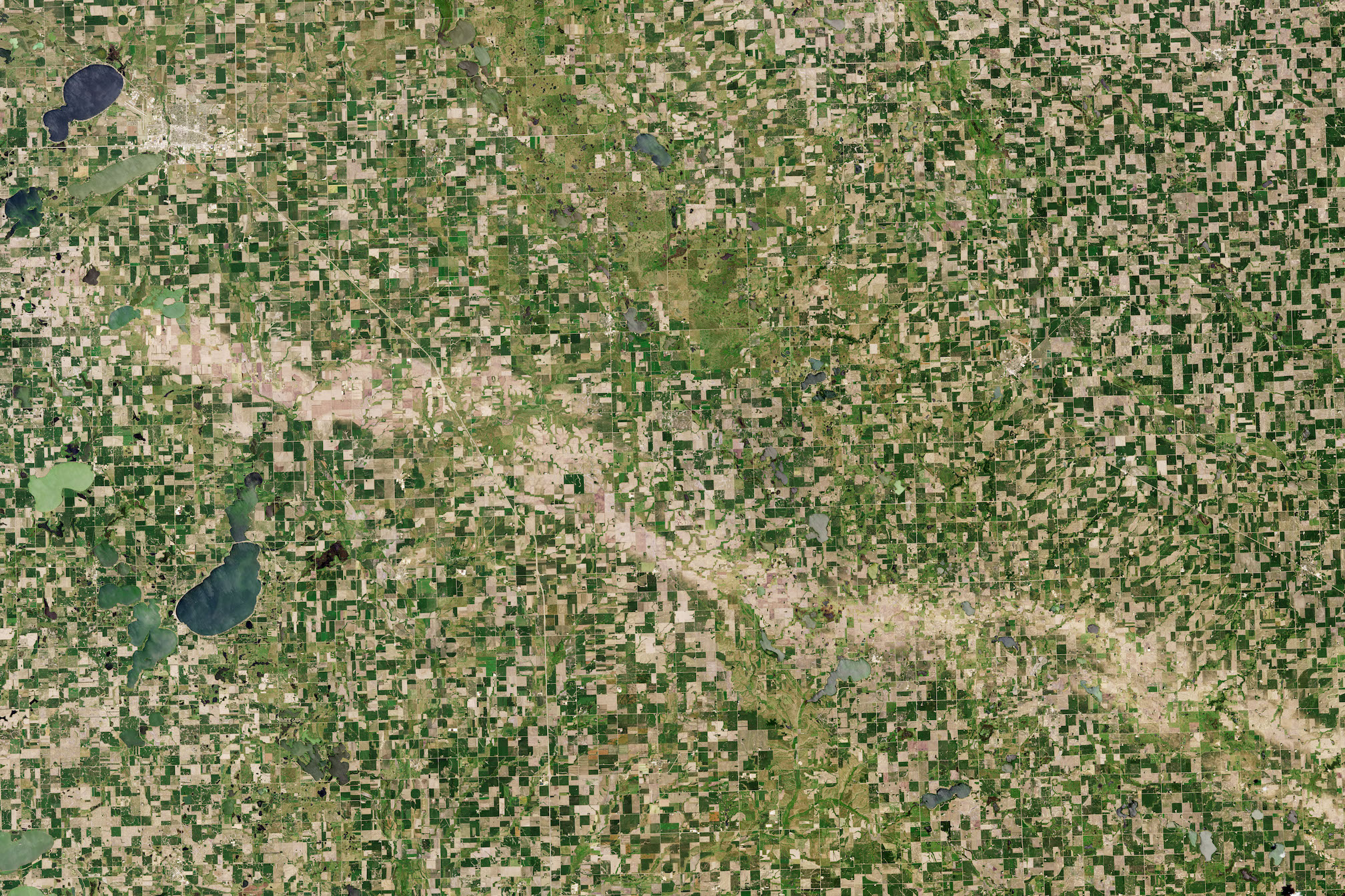 This Image of the Day comes thanks to the NASA Earth Observatory and features a look at hail damage in South Dakota and Minnesota. Severe thunderstorms brought downpours of hail that fell over corn and soybean fields right in the middle of growing season.