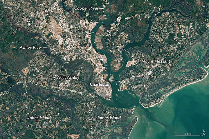 Today’s Image of the Day from NASA Earth Observatory features the metropolitan area of Charleston, South Carolina, which is among the fastest growing regions of the United States.