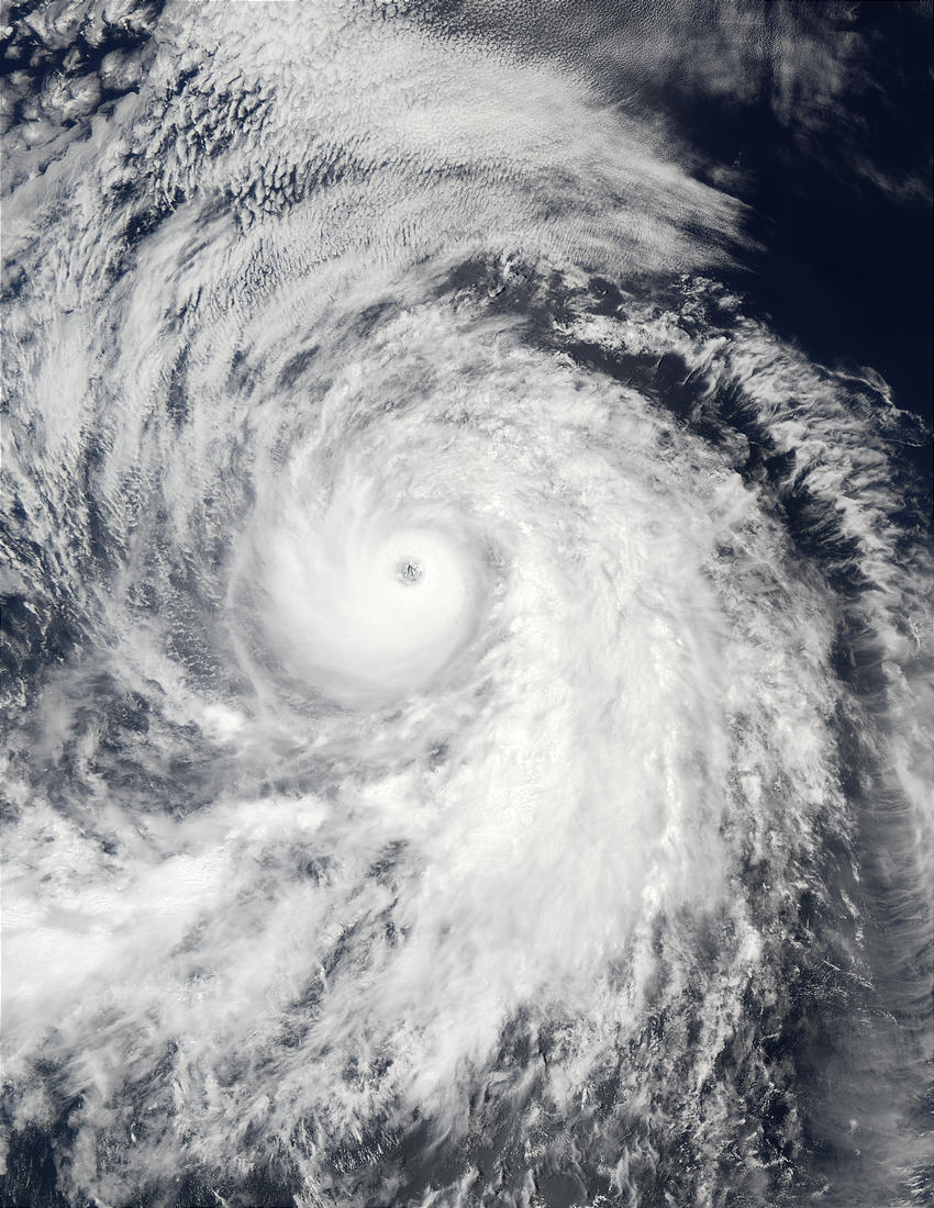 Hurricane Fausto began in the eastern Pacific Ocean west of Mexico on August 21, 2002. Therefore this storm reached Category 4. This hurricane status on August 24 before weakening as it moved westward. This image of the storm was acquired by the Moderate Resolution Imaging Spectroradiometer. (MODIS) The Aqua satellite on August 24, 2002.