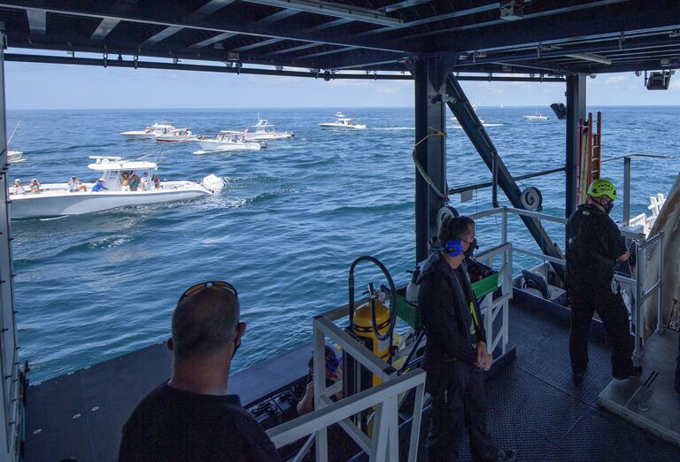 The capsule containing the astronauts splashed into the water as planned, but the Crew Dragon wasn’t out of the woods yet. Celebrations were halted by the presence of something they hadn’t accounted for — boats full of cheering fans. Spectators ignored the repeated Coast Guard warnings in the days leading up to the landing, including that same day, to clear the area, which was a serious problem. Photo Credit: NASA