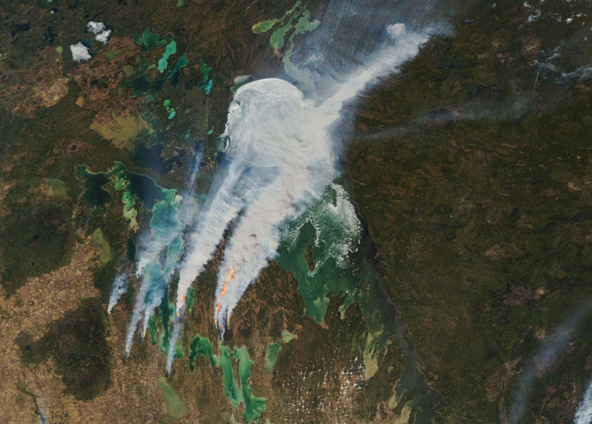 Intense wildfires in Manitoba, Canada Today’s Image of the Day from NASA Earth Observatory features smoke billowing from several intense wildfires surrounding Lake Winnipeg in Manitoba, Canada.
