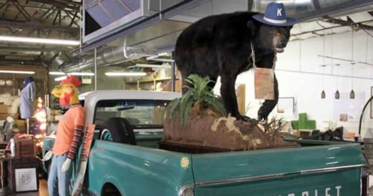 “At first, he wanted to keep it in our living room, but I wouldn’t have it. It scared me. I made him take it to the store,” Mrs. T’ang said. The bear seemed like a regular taxdermied animal, besides a jagged scar running across the creature’s stomach. T’ang thought it was a botched taxidermy incision. Photo credit: Roadside America / Facebook