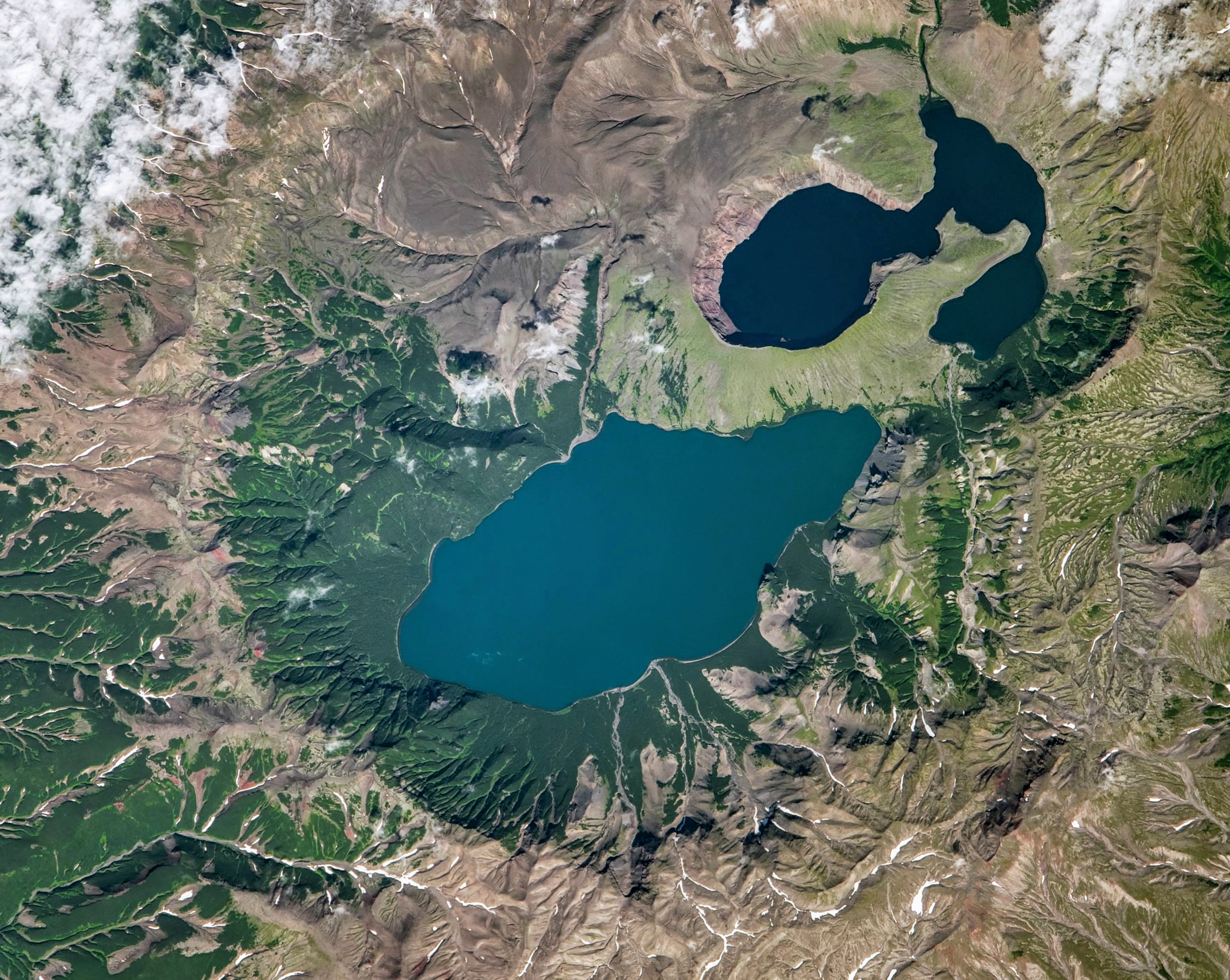 The most significant of these occurred around 240 AD, leaving behind a prominent caldera that now hosts scenic crater lakes, such as Lake Ksudach.