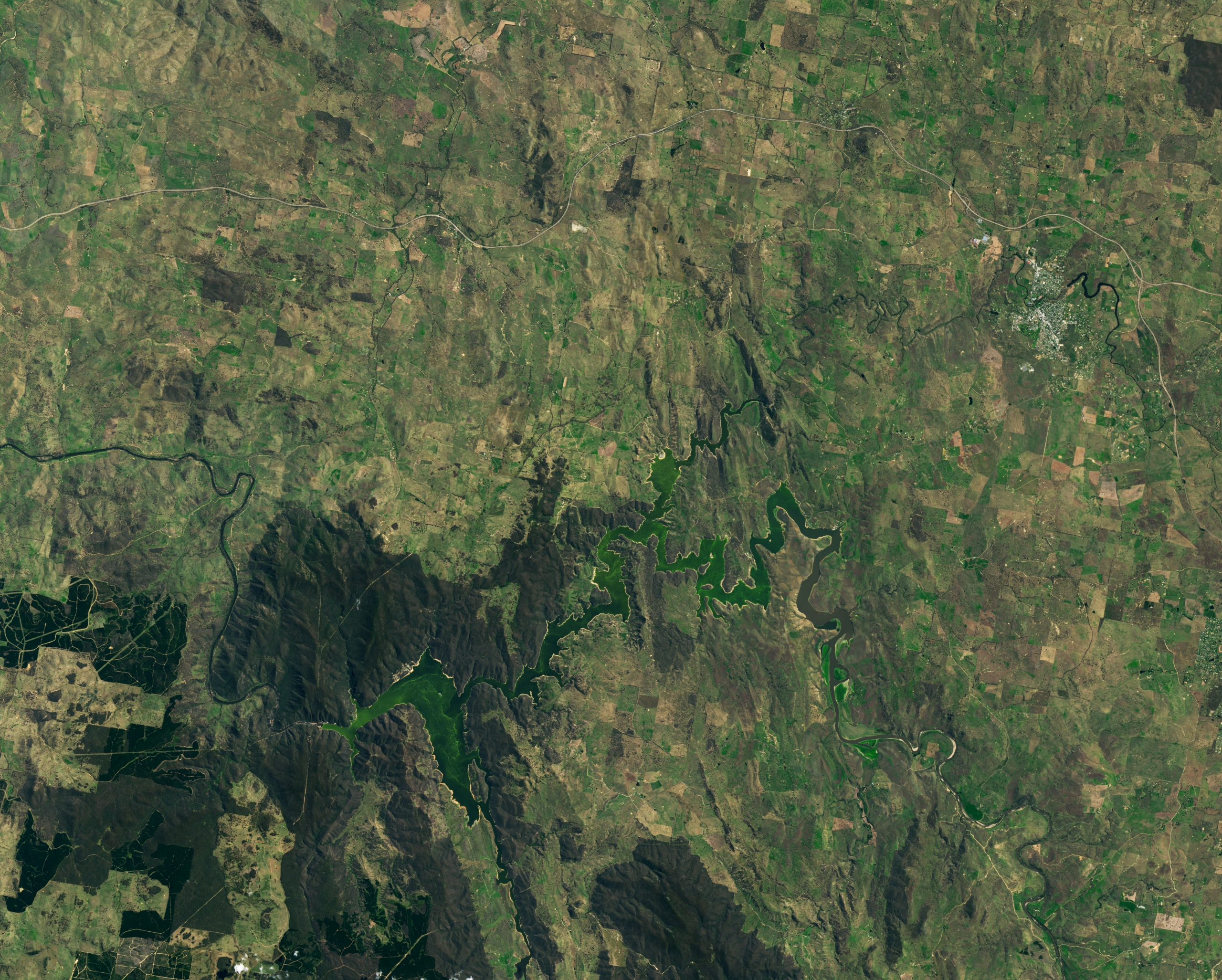 Today’s Image of the Day from NASA Earth Observatory shows algae blooms in Lake Burrinjuck and the Murrumbidgee River in New South Wales.