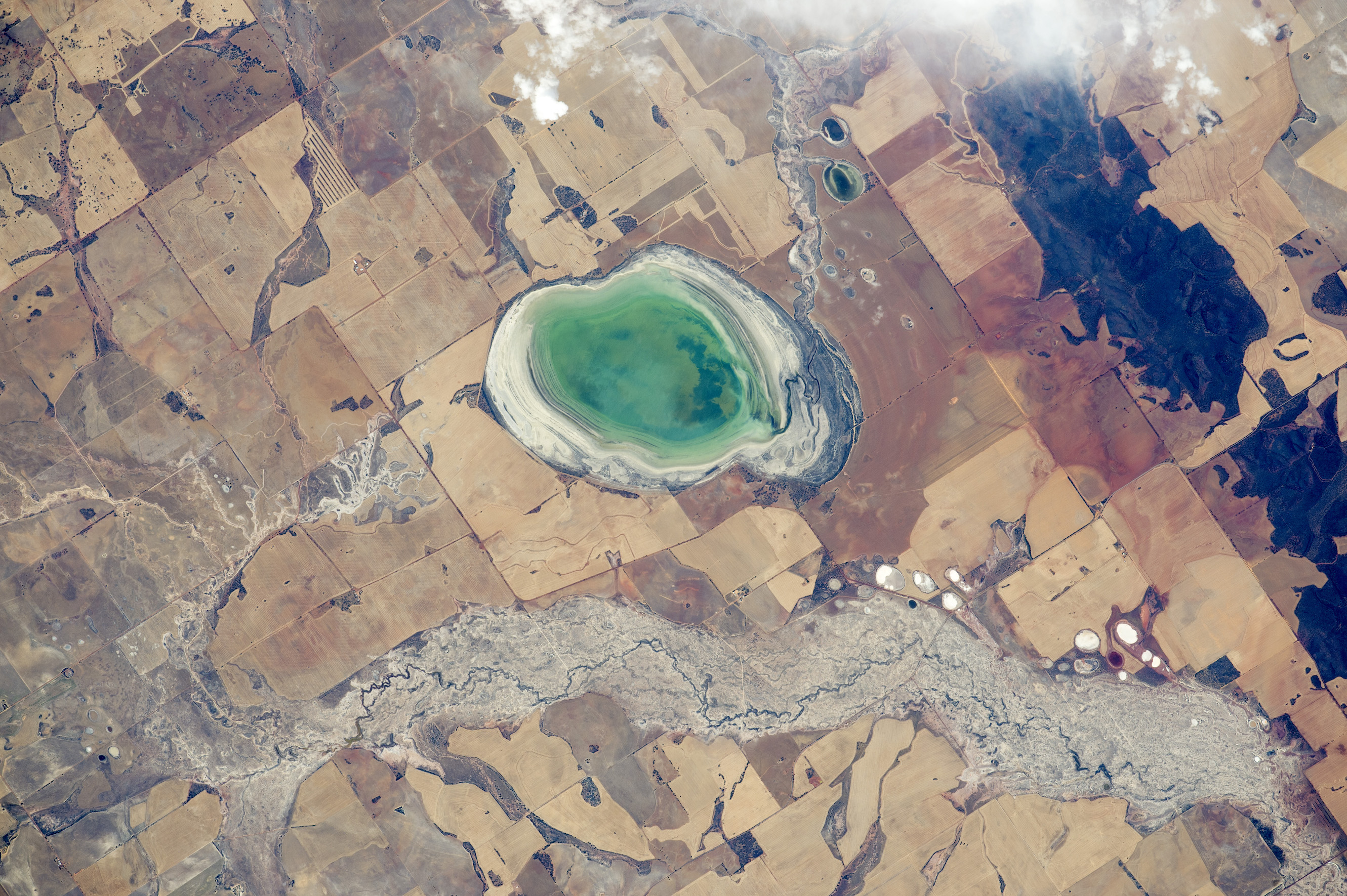 Lake Hinds in western Australia is seen here in this Image of the Day from the NASA Earth Observatory. Lake Hinds is located just outside of Perth, Australia and measures only 5 kilometers in length. Most days, Lake Hinds is dry, revealing a shiny white bed of salt. But here, the lake has been filled by recent rainy weather.