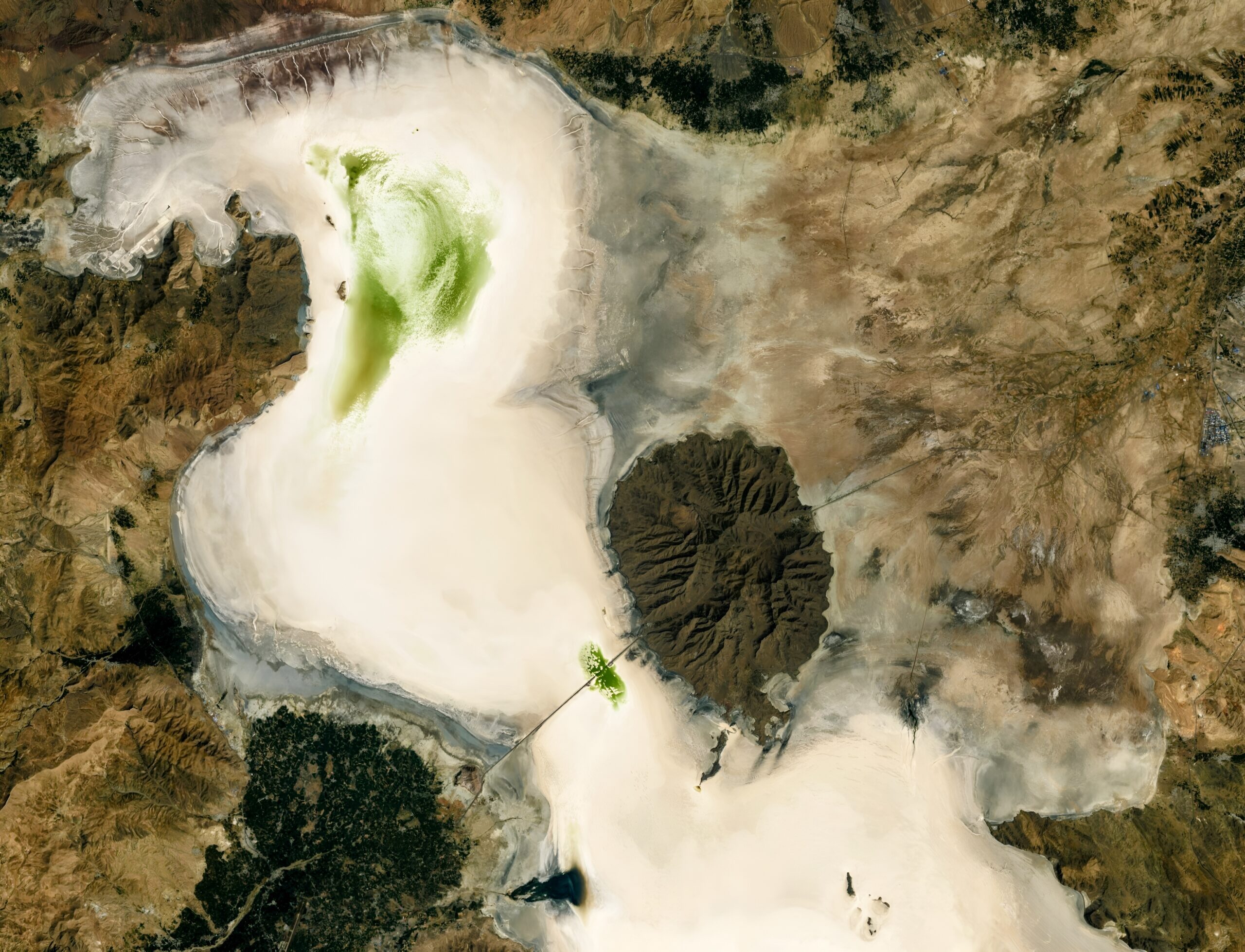 Today’s Image of the Day from NASA Earth Observatory features Lake Urmia in northwest Iran. At its greatest extent, Urmia is one of the largest hypersaline lakes on Earth.
