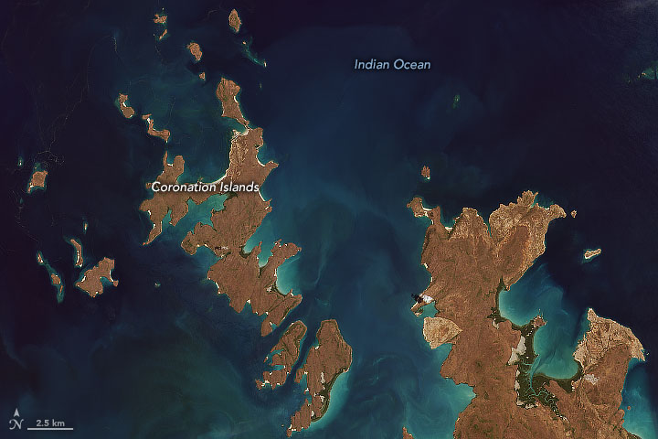The natural-color image, which was captured on October 31, shows the Coronation Islands along the Kimberly coast in the state of Western Australia.