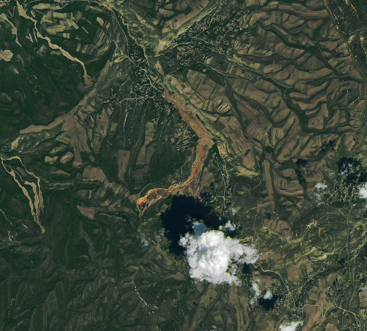 This incredible image shows the aftermath of a landslide in southern Kyrgyzstan. It was captured by the NASA Earth Observatory. The landslide occurred in April 2017 just outside the village of Kurbu-Tash in southern Kyrgyzstan, which is an area that is prone to frequent dangerous landslides.
