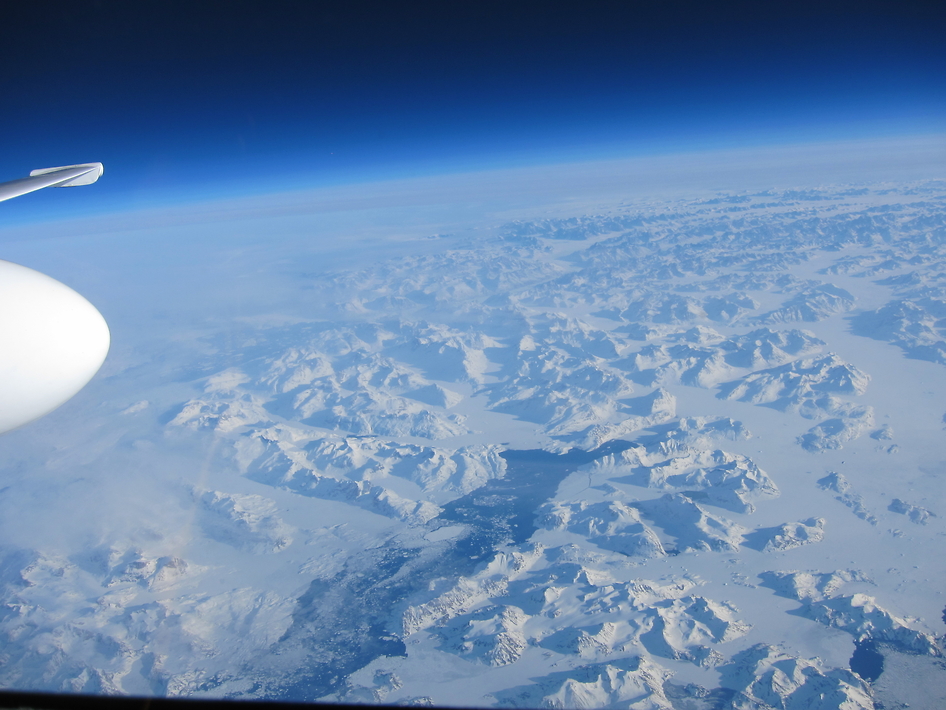 The MABEL Flies Over Greenland icy expanse of Greenland was evident in this photo from the cockpit of NASA ER-2 No. 806 as it cruised at 62,000 feet altitude on its transit flight to Iceland April 2.