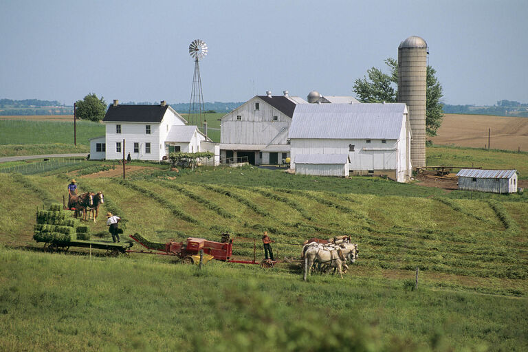 Farmers didn’t have to stick to one barn, either. A lot of them would have a whole bunch of structures. This was increasingly true when mechanization started to be a bigger part of agriculture, as most farmers will store machines in sheds. And across the middle of the country, farmers mixed grain and stock-rearing, so they’d have little hog barns and chicken coops. Photo Credit: J. Irwin/ClassicStock/Getty Images