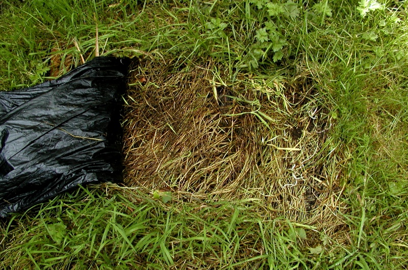 After fifteen minutes of watching his yard expel water from its underbelly, James began to notice something strange. On the opening hole, a black piece of plastic stuck out from beneath the grass. James approached the hole and grabbed the piece of plastic. He tried to pull it out but it wouldn’t budge. It looked like the edge of a black trash bag.