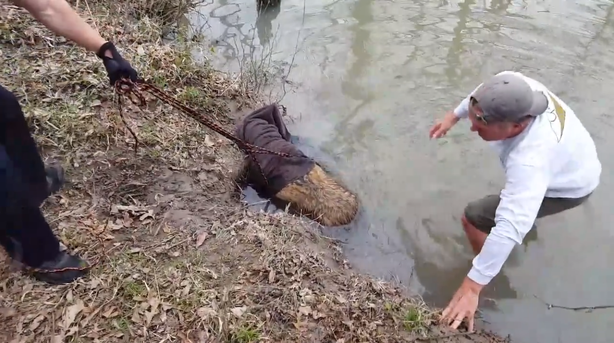 The beaver refused to budge and was well and truly stuck in the mud, no matter how hard the team pulled. Finally, after struggling for what seemed like days, they felt the animal start to move a little. Spurred on, they pulled with all their might in one last massive heave, and finally, the beaver was lifted to safety. Jim, wiping the mud from its face, suddenly stumbled backward. This was no beaver!