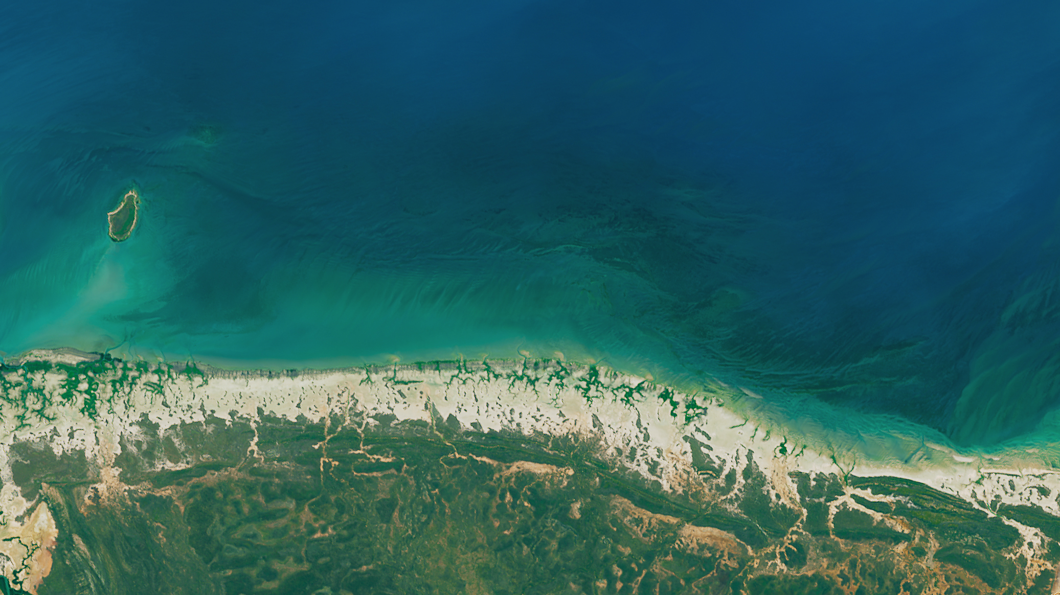 Today’s Image of the Day comes from the NASA Earth Observatory and features a look at mangroves dying off along the northern coast of Australia along the Gulf of Carpentaria. More than 27 square miles of Mangroves dying off along the Australian coast have dried up since 2014 due to unusually high temperatures. Dying mangroves are changing the entire appearance of the Australian coast.