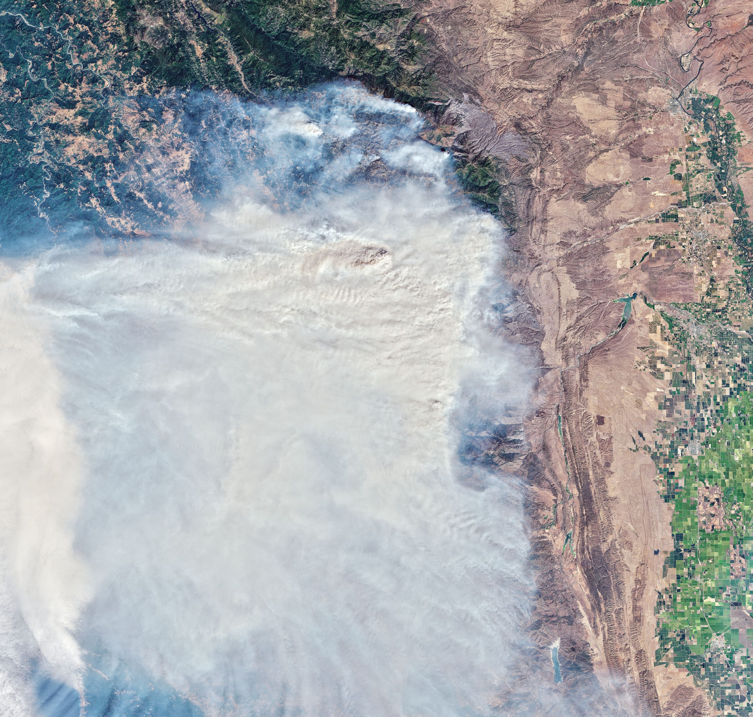 Many fires are still raging across California. Today’s Image of the Day from NASA Earth Observatory shows smoke streaming over Mendocino County from the August Complex, one of 20 major fires that are still burning across California.