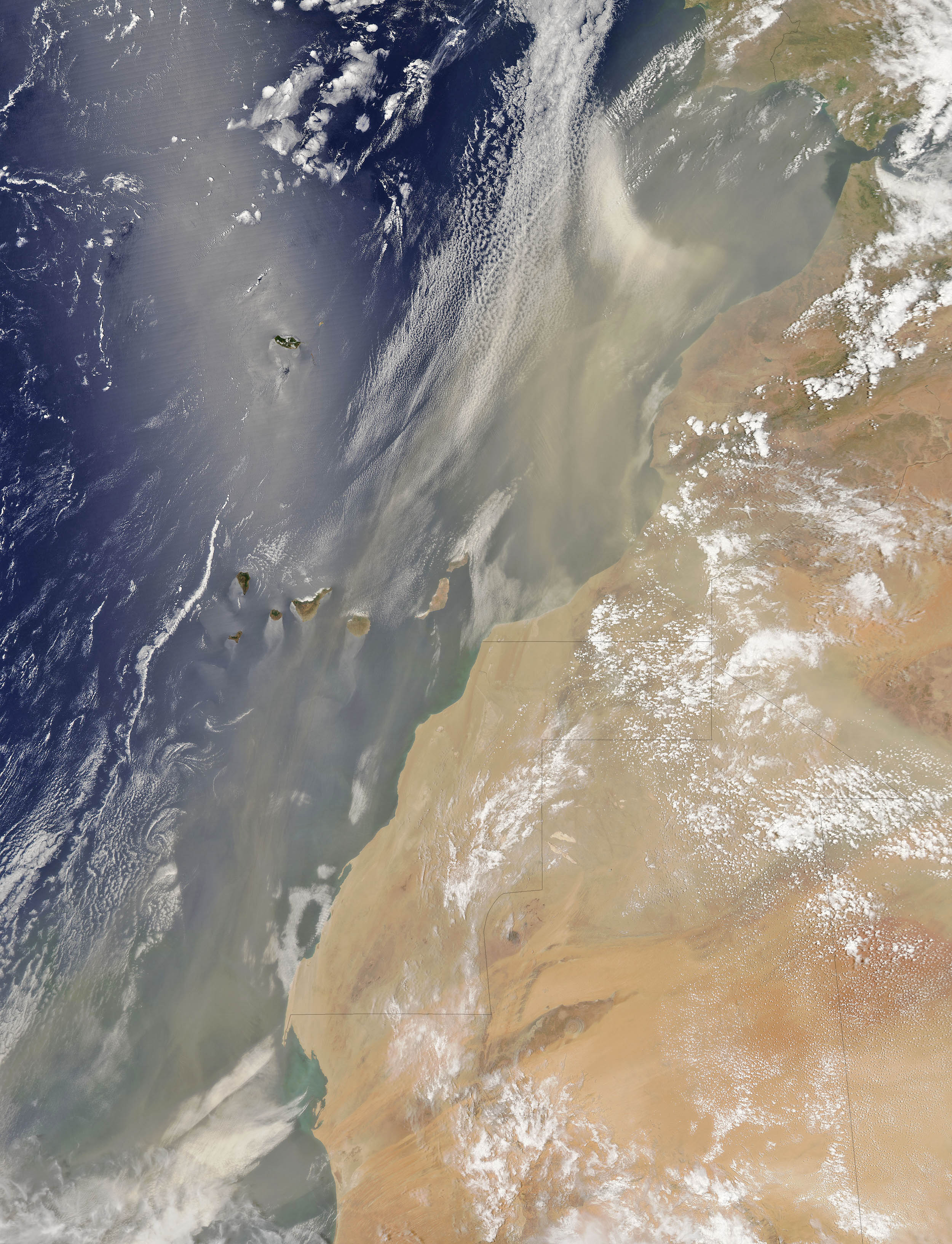 Massive amounts of dust poured off of West Africa throughout the month of July 2016, with strong winds lofting dust and sand high into the atmosphere and across the Atlantic Ocean.