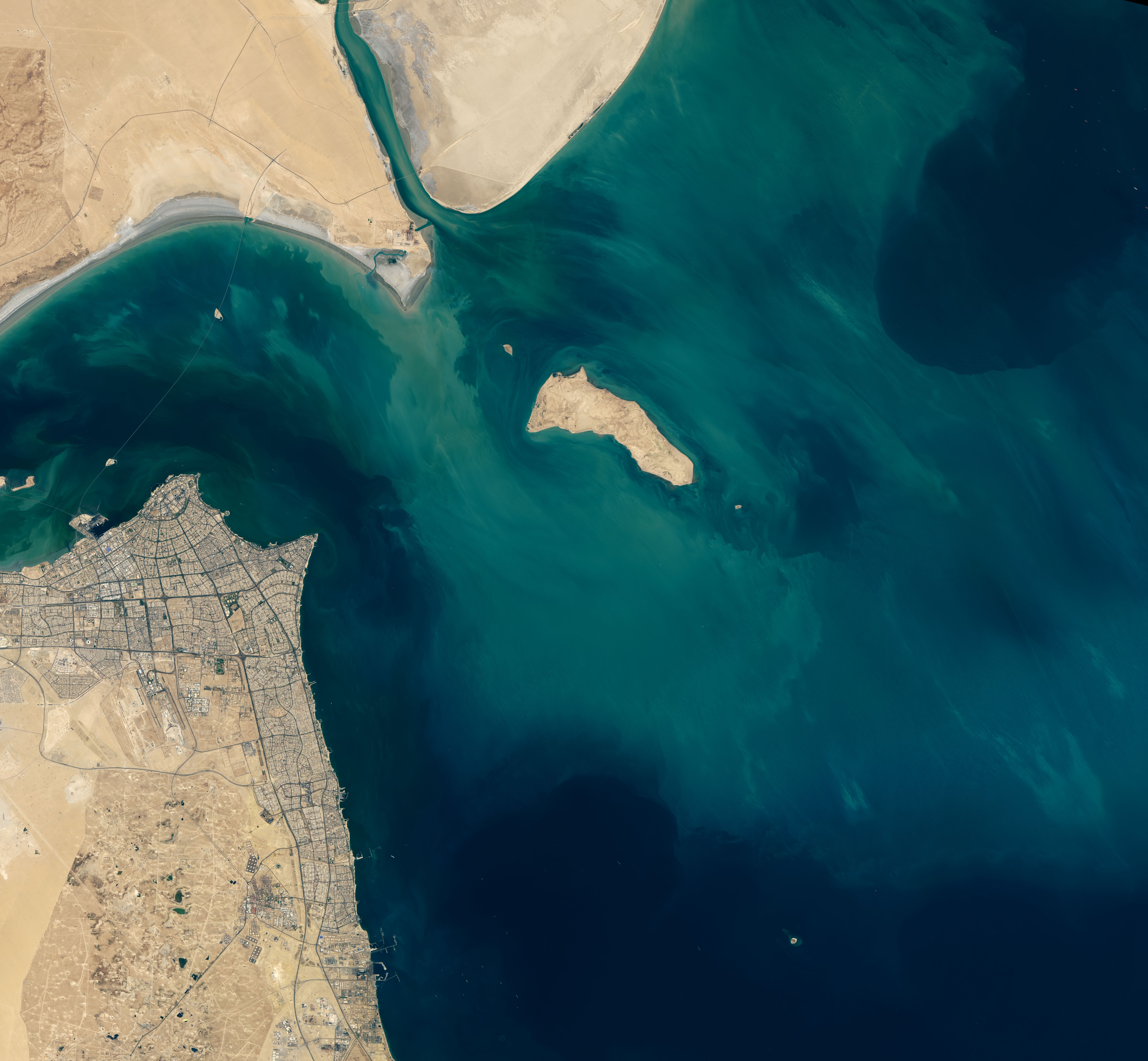 Today’s Image of the Day from NASA Earth Observatory features Kuwait Bay, where one of the world’s largest bridges has been constructed to connect Bay Island North and Bay Island South.