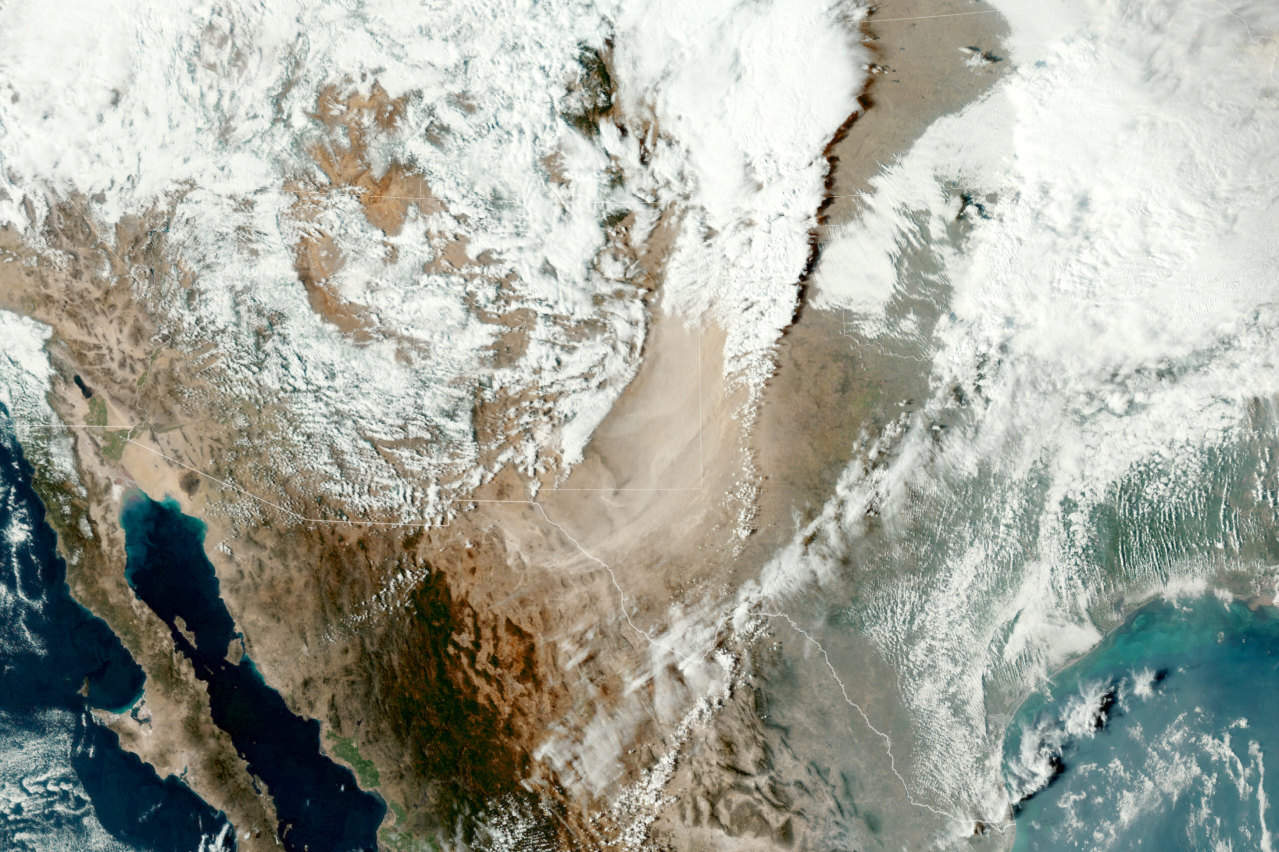 Today’s Image of the Day from NASA Earth Observatory features a dust storm over the southwestern United States on February 26, 2023.